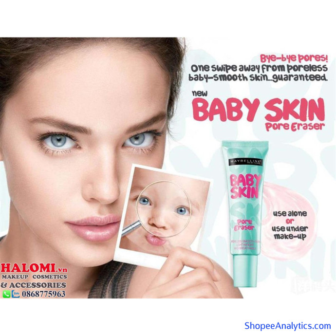 Kem lót Baby Skin Pore Eraser giúp làm mịn da, che khuyết điểm, tạo hiệu ứng lỗ chân lông thu nhỏ, cho lớp nền mịn màng hoàn hảo. Cấu trúc gel trong suốt, mịn nhẹ dễ tán, hiệu quả trong việc che lỗ chân lông ngay tức thì. Hứa hẹn sẽ mang lại làn da láng mịn như da em bé trong tíc tắc.