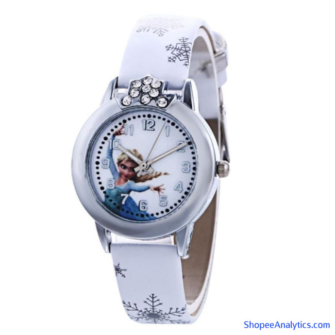Mặt số của chiếc đồng hồ trẻ em này được thiết kế với chủ đề phim hoạt hình Frozen.