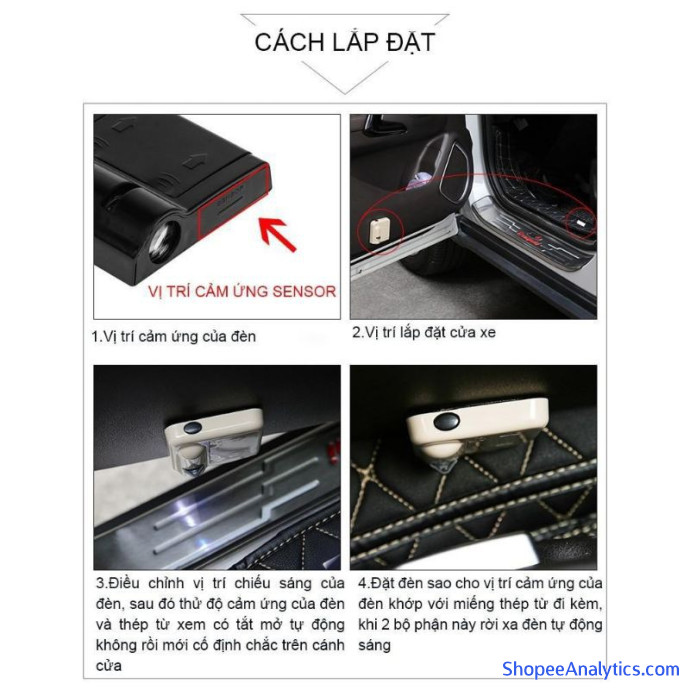 Đèn led cửa xe hơi không khoan đục lỗ, không nối dây, lắp đặt nhanh chóng