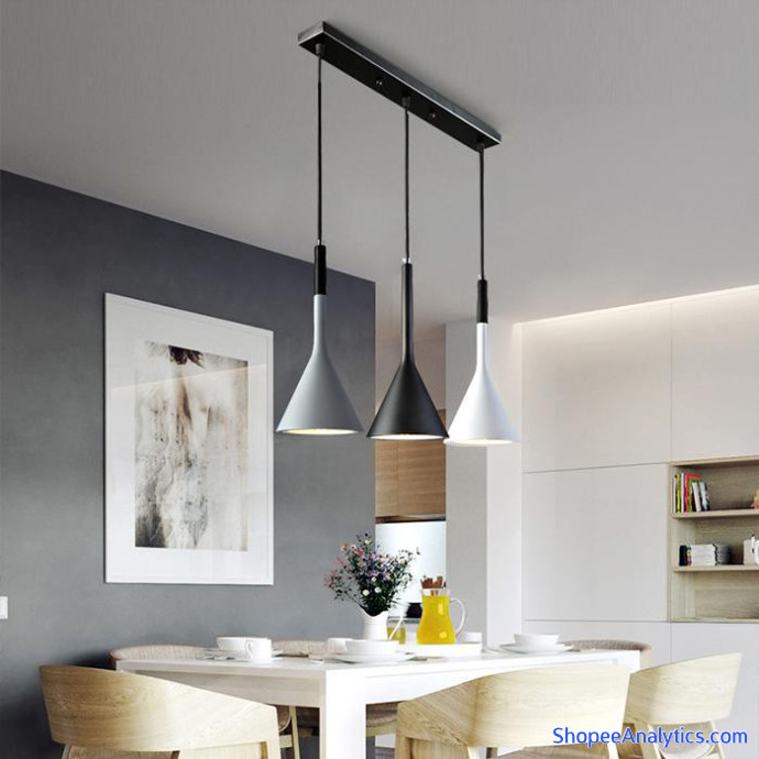 Đèn treo thả trần cao cấp trang trí bàn ăn cao cấp VERSION 3 bóng ngang 3 bóng ngang cao cấp kèm bóng LED chuyên dụng