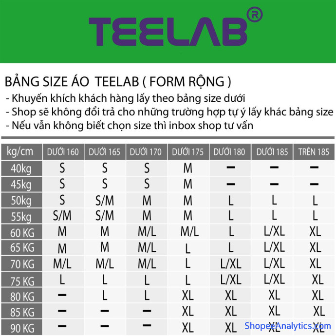 👉 Cách chọn size: Teelab có bảng size mẫu. Nếu chưa biết lựa size bạn có thể inbox để được Teelab tư vấn.
