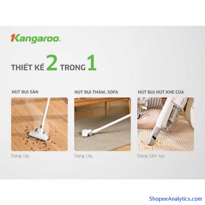 Kết hợp giữa máy hút bụi cầm tay và máy hút bụi đứng, đáp ứng nhu cầu làm sạch toàn bộ ngôi nhà với nhiều loại bề mặt, chiều cao và kích thước khác nhau. Công suất lớn đến 450W và hệ thống hút lốc xoáy đơn mạnh mẽ loại bỏ các loại bụi bẩn nhanh chóng. Tận hưởng và hít thở bầu không khí trong lành cùng Máy hút bụi Kangaroo KGRB02.