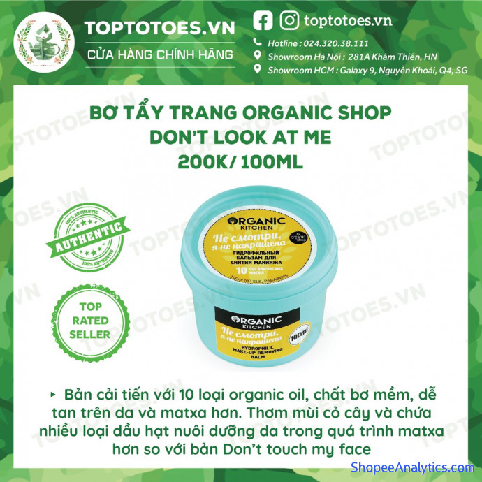 ☀️BƠ TẨY TRANG KHÔNG CẦN NHŨ HOÁ HYDROPHILIC MAKE-UP REMOVING BALM ORGANIC KITCHEN: 200k/100ml (dùng cực lâuu)☀ Không parabens, SLS, phù hợp da mụn #toptotoestẩytrang #toptotoesorganicshop
