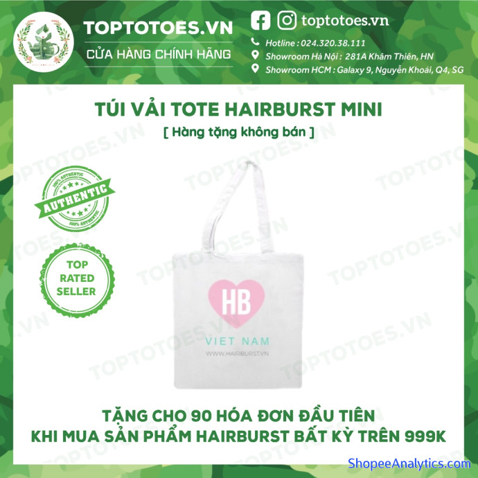 ✨Với 90 đơn hàng đầu tiên mua tổng giá trị sản phẩm Hairburst trên 999.000 sẽ được tặng 1 túi vải tote thời trang✨