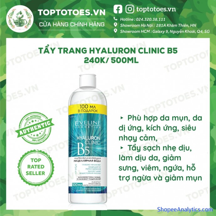 - Xem story chắc c thấy t có vẻ ưu ái e B5 này hơn e Jeju, và đã dùng hết nhiều hơn🤣 Vì như t kể với các c thì Nga mới chuyển lạnh đột ngột, da t .... lại kích ứng như nhất nhiều bạn trong cái thời tiết đang hạ 1 phát thành đông như này😐. Vì môi trường làm việc nên t vẫn phải make up, nhưng cực chăm chỉ làm sạch, cấp ẩm và dùng các sp chứa B5 (sẽ sớm review hehe) để làm dịu da & giảm mụn, em tẩy trang này góp công cực cực kì nhiều :(( 🌿Độ thần thánh của các em tẩy trang Eveline chắc nàng nào cũng biết ròi🤣 Toy chỉ up duy nhất 1 post review cả năm trước, và cứ như xuất hiện 1 tượng đài mới trong giới nước tẩy trang vậy, đánh bật hẳn các em Garnier trong giới tt giá mềm và đc nhiều b so sánh đáng mua hơn cả Bioderma (vì rẻ hơn nhiềuu và làm sạch ko kém cạnh)🤣 Bán không kịp thở cho tới giờ... Nàng nào còn nghi độ đỉnh của các em nó thì cứ ghé The Green Group nhà Toptotoes.vn, search “tẩy trang eveline” và khám phá nha🥰 🌿🌿Để review chính xác thì khả năng tẩy trang và làm sạch của 2 e mới này t thấy không khác nhiều những dòng cũ, tức vốn rất đỉnh rồi🙆🏻♀️. Dù nhẹ dịu nhưng các e ấy còn tẩy sạch make up, làm sạch được cả mascara và son nhé😌😌 Dùng xong cảm giác da siêu sạch, mát, ẩm vì tẩy trang có hỗ trợ cấp nước nữa nên siêu thích ehe, à các e ấy KHÔNG cần rửa lại với nước nha. ‼️‼️T xin lặp lại là dù có make up ko thì các nàng cũng cần tẩy trang mỗi ngày đấy nhé😂 Chai 400ml 500ml chắc dùng nửa năm ko hết nên chẳng nên tiếc đâuu. Tẩy trang sẽ giúp chúng mình hoà tan làm sạch mỹ phẩm, bụi bẩn, dầu nhờn bít tắc trong lỗ chân lông mà sữa rửa mặt rất khó làm sạch được, ngừa mụn, mụn đầu đen và se nhỏ lỗ chân lông nhé (lỗ chân lông to còn thường do bít tắc bã nhờn mà😚)
