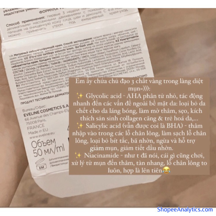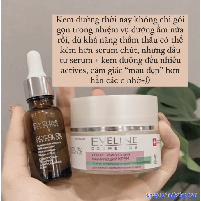 • Không nhiều kem dưỡng chứa niacinamide, ít trong số đó có chất “đẹp”, và nếu đã có niacinamide, chất đẹp, giá còn rẻ bèo, lại còn bonus cả Salicylic acid (BHA) & Glycolic acid (AHA), tấn công các vấn đề của da từ ngoài vào trong, thì chỉ có thể là Kem dưỡng Eveline Glycol Therapy nhà Top thui :joy:. Kem dưỡng thời nay không chỉ gói gọn trong nhiệm vụ dưỡng ẩm nữa rồi, dù khả năng thẩm thấu có thể kém hơn serum chút, nhưng đầu tư serum + kem dưỡng đều nhiều actives, cảm giác “mau đẹp” hơn hẳn các c nhờ=))