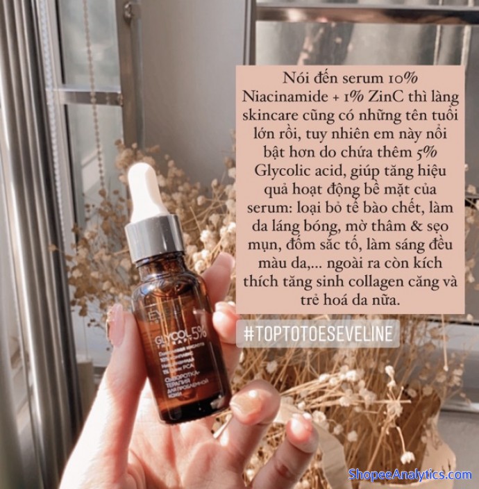 Tổng thể Serum Eveline Glycol Therapy 10% Niacinamide ngừa mụn, mờ thâm, giảm dầu nhờn cho da láng bóng, đều màu được đánh giá trung bình 4.97/5 điểm dựa vào 2,868 đánh giá qua 6,297 lượt mua hàng (Cập nhập ngày 20/10/2021).