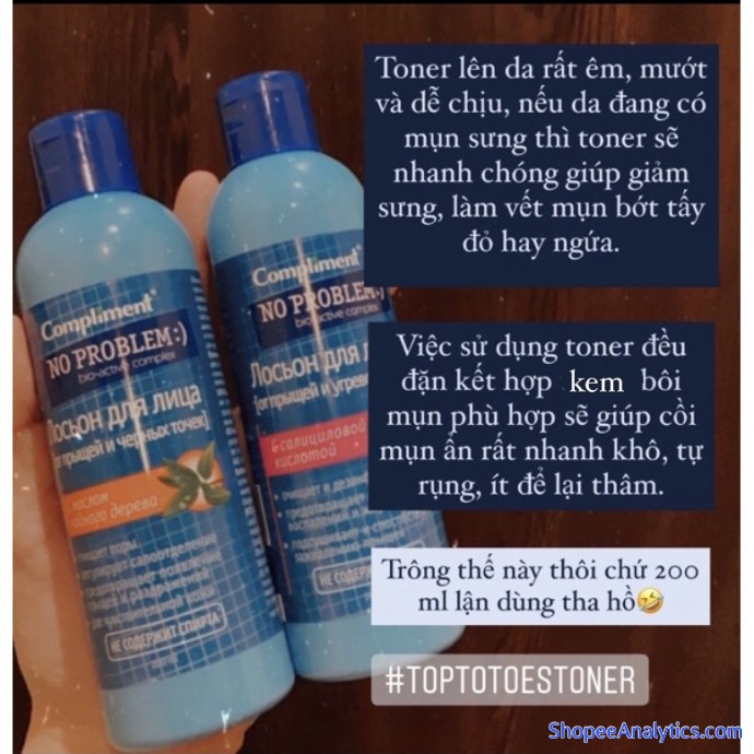 Tổng thể Toner Compliment No Problem làm sạch sâu, kiềm dầu, giảm viêm, giảm mụn được đánh giá trung bình 4.96/5 điểm dựa vào 4,857 đánh giá qua 10,189 lượt mua hàng (Cập nhập ngày 17/10/2021).
