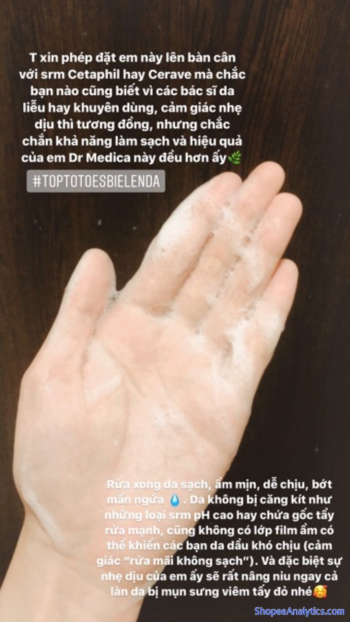 T xin phép đặt em này lên bàn cân với srm Cetaphil hay Cerave mà chắc bạn nào cũng biết vì các bác sĩ da liễu hay khuyên dùng, cảm giác nhẹ dịu thì tương đồng, nhưng chắc chắn khả năng làm sạch và hiệu quả của em Dr Medica này đều hơn ấy🌿
