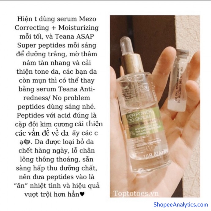 • Do sợ bắt nắng vì % acid khá cao và muốn kết hợp nuôi da nên hiện t dùng serum Mezo mỗi tối, và Teana ASAP mỗi sáng (có thể layer với nhau) để dưỡng trắng, mờ thâm nám tàn nhang và cải thiện tone da, các bạn da còn mụn thì có thể thay bằng serum Teana Anti-redness/ No problem Super peptides dùng sáng nhé. Peptides với acid đúng là cặp đôi kim cương cả cải thiện tình trạng mụn, thâm và nuôi dưỡng da ấy các c ạ🤣. Da được loại bỏ da chết hàng ngày, lcl thông thoáng, sẵn sàng hấp thu dưỡng chất, nên đưa peptides vào là “ăn” nhiệt tình và hiệu quả vượt trội hơn hẳn♥️. 1% Sepiwhite™ MSH (trong Teana ASAP) kết hợp với 5% niacinamide cực hiệu quả mờ thâm đen, thâm đỏ, nám, tàn nhang, nên các c nhớ đem cả đôi Bielenda Mezo & Teana ASAP về nháa🥰