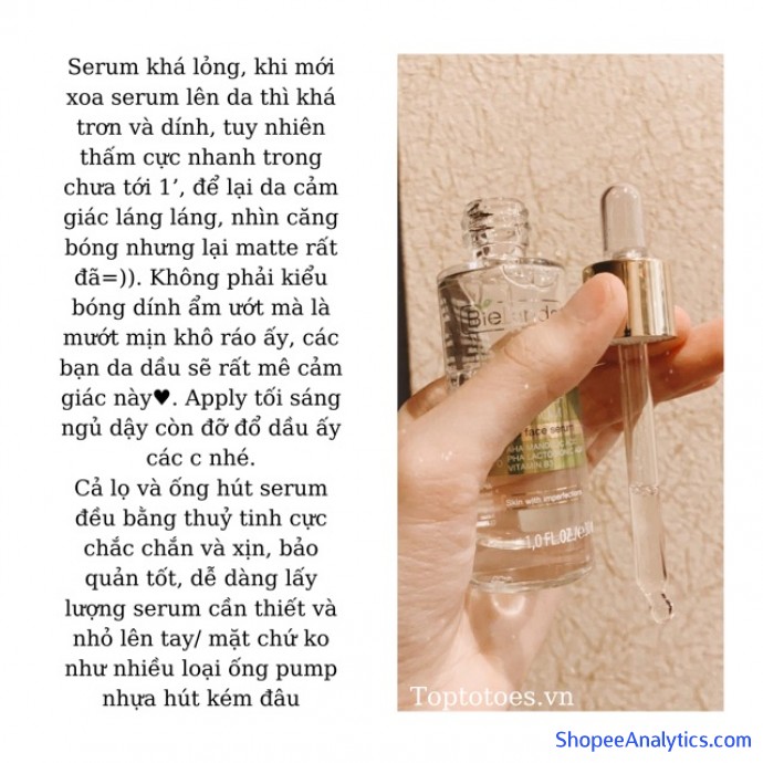 • Khi mới xoa serum lên da thì khá trơn và dính, tuy nhiên thấm cực nhanh, da căng bóng nhưng lại matte rất đã=)). Không phải kiểu bóng dính ẩm ướt mà là láng mướt khô ráo ấy, các bạn da dầu sẽ rất mê cảm giác này🤤. Sáng ngủ dậy cũng không bị dầu luôn nhé🥰.