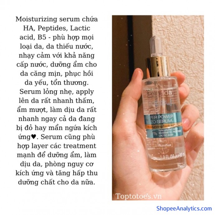 Tổng thể Serum Bielenda Super Power Mezo Skin Clinic Moisturizing cấp nước, dưỡng ẩm/ Correcting căng bóng, mờ thâm được đánh giá trung bình 4.98/5 điểm dựa vào 4,098 đánh giá qua 9,705 lượt mua hàng (Cập nhập ngày 21/10/2021).