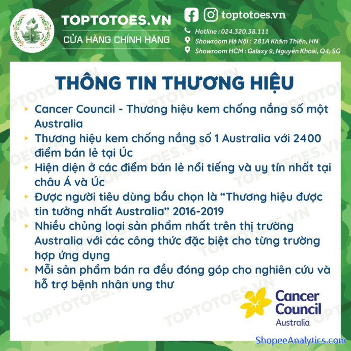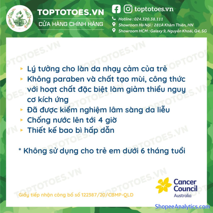 TOPTOTOES.VN PHÂN PHỐI CHÍNH HÃNG 100% SẢN PHẨM CANCER COUNCIL, CÓ CERTIFICATE CỦA HÃNG, SẢN PHẨM CÓ ĐỦ TEM PHỤ NHẬP KHẨU