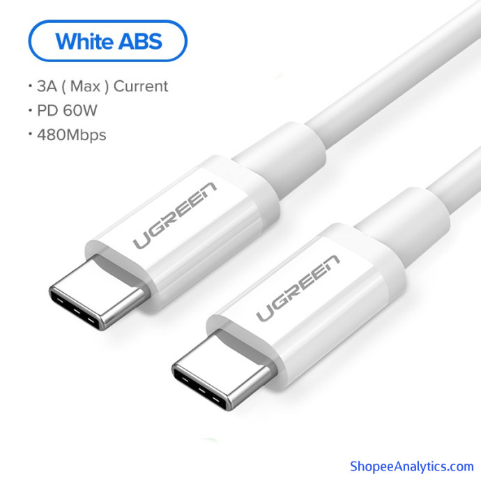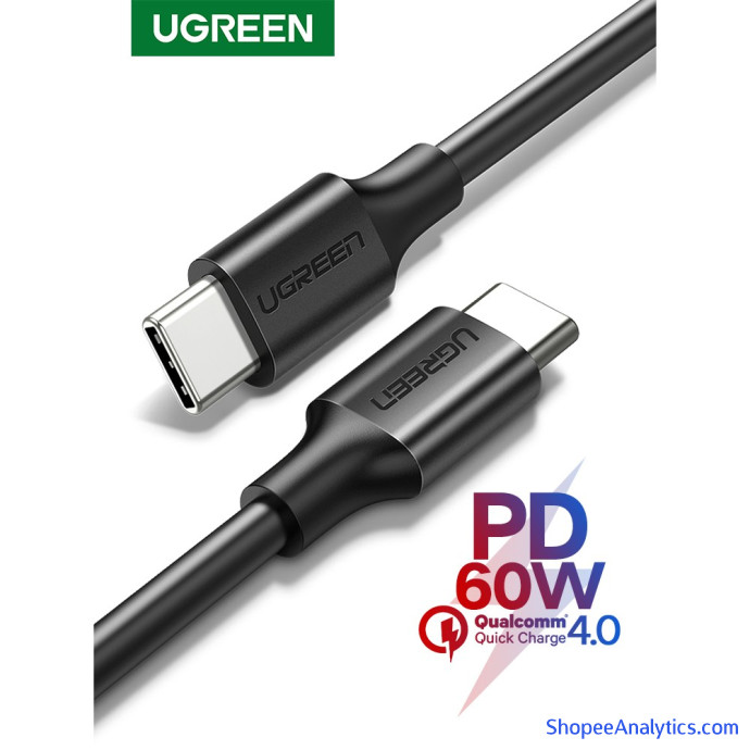 Cáp USB C sang USB Type-C Ugreen 60W cho Huawei Mate 20 PD QC 3.0 Cáp dữ liệu sạc nhanh cho Macbook Samsung S9 Plus Cáp USB C