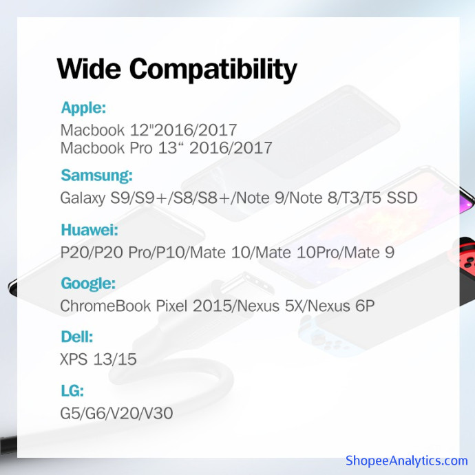 • Tương thích rộng rãi, tương thích với Huawei Mate 9, P10, P20 Series, Mate 20 Series. Samsung Note 9, Note 8, S8, S9, Xiaomi Mi 6, Mi 8, Mix 2, Macbook, Xiaomi Pro, Dell XPS 13, v.v.