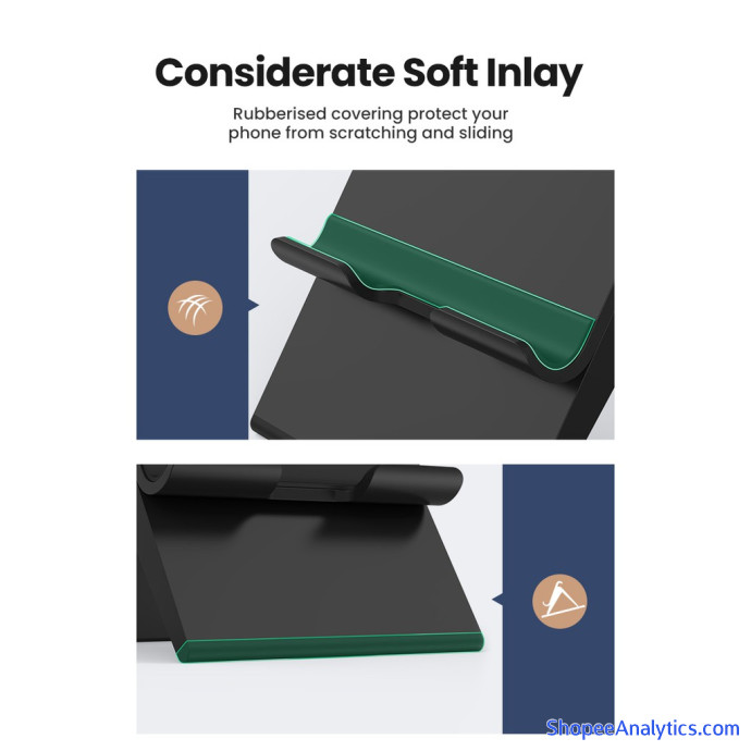 🔱 Sản phẩm có thể điều chỉnh nhiều góc: Chỉ cần điều chỉnh và chọn góc xem ưa thích của bạn trong số 100 độ. Giá đỡ điện thoại để bàn UGREEN giữ điện thoại thông minh hoặc thậm chí máy tính bảng mini của bạn ở một góc thoải mái, rất thích hợp để xem video, đọc sách, quay video, duyệt web, chơi trò chơi hoặc gọi facetime.
