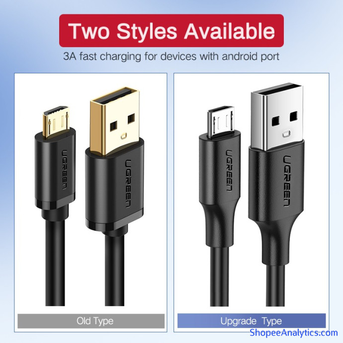 1x Cáp sạc và đồng bộ dữ liệu Ugreen USB 2.0 micro USB 0.25m