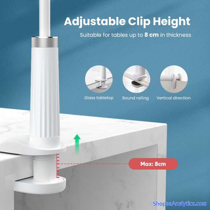 - Chiều cao kẹp có thể điều chỉnh, có thể kẹp cho mọi loại bàn hoặc bàn làm việc có độ dày 3 inch.