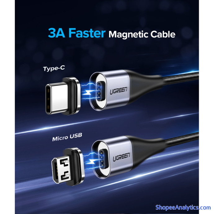 - Cáp Micro USB dòng điện 2.1A từ tính mạnh, sạc nhanh cho các thiết bị có cổng Type C hoặc Micro USB