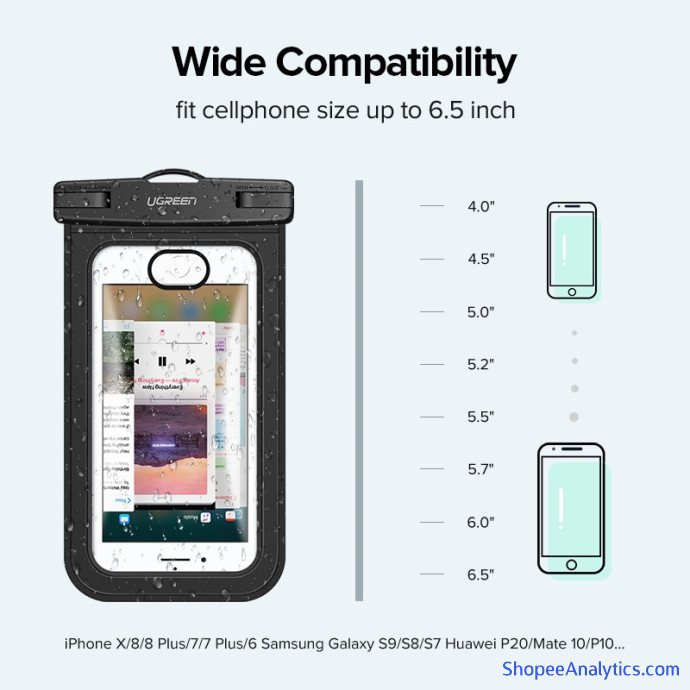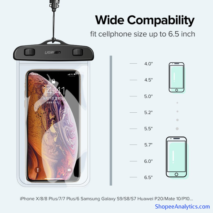 Túi đựng điện thoại chống nước UGREEN là sự lựa chọn tuyệt vời cho các dòng điện thoại thông minh có kích thước đường chéo từ 4" đến 6.5", bảo vệ điện thoại khỏi nước, bụi, bẩn, tuyết hay thậm chí là trầy xước một cách hiệu quả.