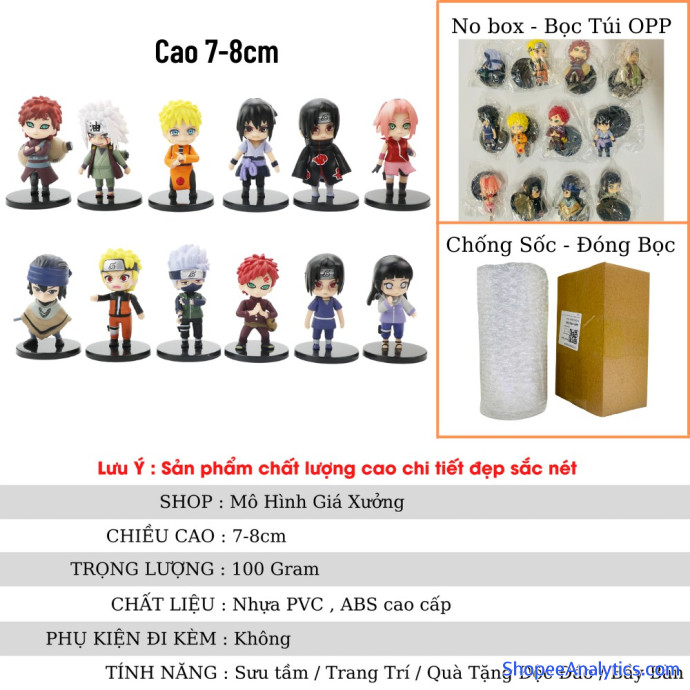 Tổng thể Mô hình Naruto chibi bán lẻ 12 nhân vật Naruto Sasuke Sakura Gaara Itachi Kakashi Hinata Jiraira ... Figure Anime Naruto được đánh giá trung bình 4.94/5 điểm dựa vào 205 đánh giá qua 846 lượt mua hàng (Cập nhập ngày 08/10/2021).