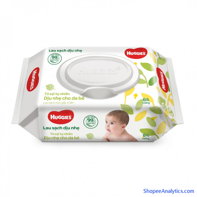 Khăn ướt Huggies (gói 64 tờ) là dòng sản phẩm khăn ướt em bé hoàn toàn mới với công nghệ coform Triple Clean có thành phần chứa đến 68% bột giấy tự nhiên, giúp lau sạch các vết bẩn thật hiệu quả, lại rất an toàn và dịu nhẹ cho làn da bé sơ sinh.