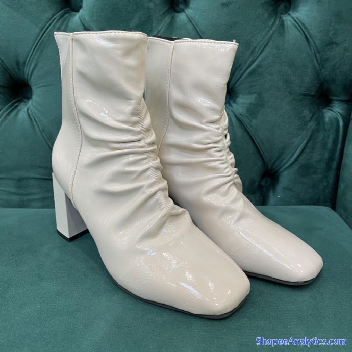 Tổng thể Bốt nữ/ boot nhăn da bóng Cổ Thấp 7Cm Hai Màu Đen Kem Cực Sang Chảnh Đế Vuông Mũi Vuông được đánh giá trung bình 4.77/5 điểm dựa vào 248 đánh giá qua 496 lượt mua hàng (Cập nhập ngày 18/10/2021).