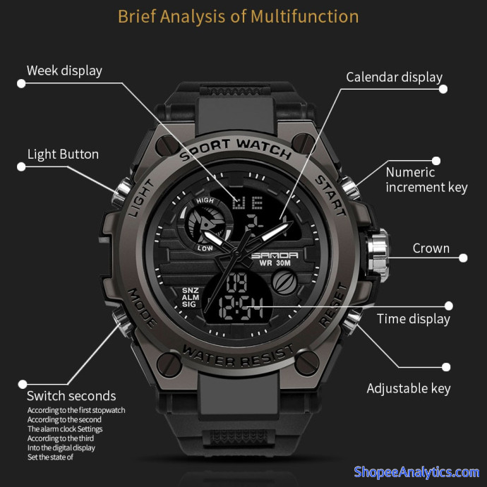 Tổng thể Đồng Hồ Quartz SANDA 739 Màn Hình LED Kỹ Thuật Số Báo Thức Chống Nước Phong Cách Thể Thao Cho Nam được đánh giá trung bình 4.94/5 điểm dựa vào 16 đánh giá qua 33 lượt mua hàng (Cập nhập ngày 06/10/2021).