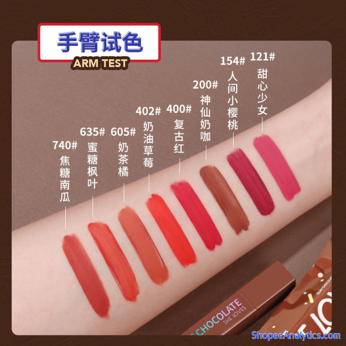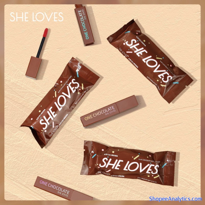 [Son Kem Lì Chocolate] Son kem SHE LOVE hình chocolate không chì chính hãng (8 màu)
