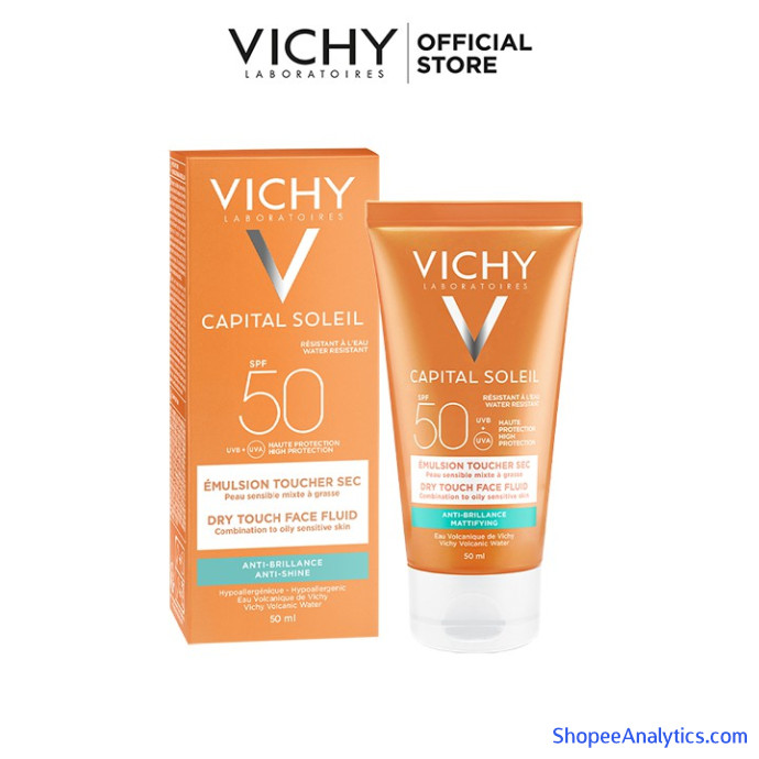 Tổng thể Kem chống nắng không nhờn rít SPF 50 UVA +UVB Vichy Capital Soleil Mattifying Dry Touch Face Fluid 50ml được đánh giá trung bình 4.92/5 điểm dựa vào 1,054 đánh giá qua 2,803 lượt mua hàng (Cập nhập ngày 18/10/2021).