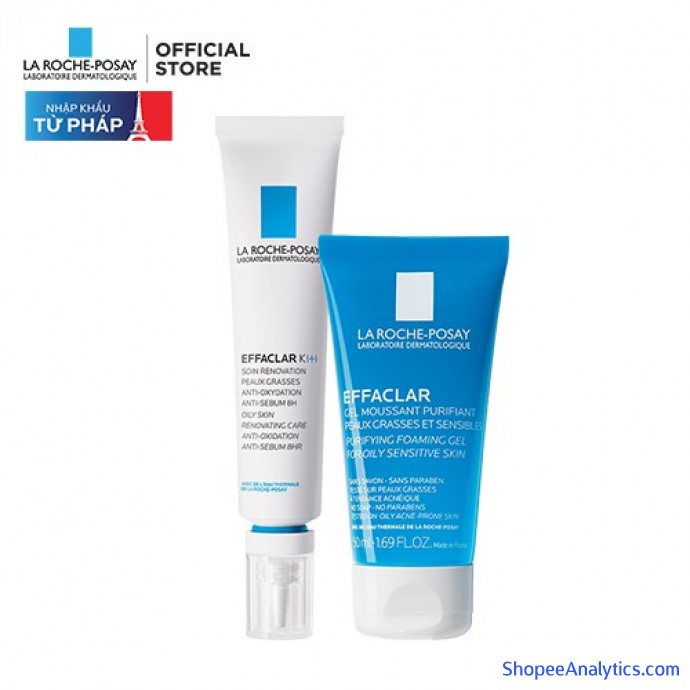 Bộ đôi kem dưỡng giúp giảm mụn đầu đen, giảm bóng nhờn La Roche-Posay Effaclar K+ 40ml và Gel rửa mặt dành cho da dầu mụn Effaclar Gel 50ml với các hoạt chất tăng cường hiệu quả giảm thiểu mụn đầu đen, kiểm soát bã nhờn trên da cùng với sữa rửa mặt tạo bọt nhẹ nhàng làm sạch, duy trì độ ẩm mịn, căng mướt cho làn da của bạn. Bộ sản phẩm an toàn, thích hợp cho làn da dầu mụn.