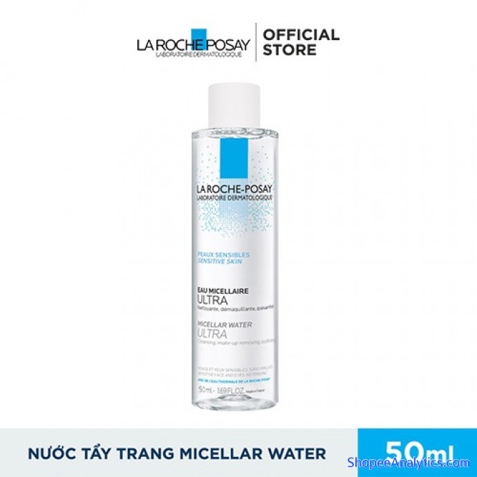 2. Nước tẩy trang giàu khoáng cho da nhạy cảm La Roche-Posay Micellar Water Ultra Sensitive Skin 50ml với công nghệ cải tiến Glyco Micellar mang lại hiệu quả làm sạch sâu vượt trội, giúp lấy đi lớp trang điểm, bã nhờn và các hạt bụi siêu nhỏ có trong khói xe và môi trường ô nhiễm nhưng vẫn an toàn cho làn da nhạy cảm. Thành phần giàu GLYCERIN giúp dưỡng ẩm làm mềm da, giảm ma sát tối đa khi làm sạch & nước khoáng La Roche-Posay làm dịu da, giảm kích ứng và chống o.xi hóa. Sản phẩm phù hợp để tẩy trang cho vùng mặt, mắt và môi.