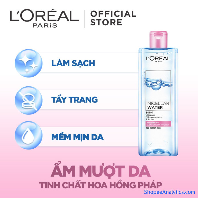 02 x Tẩy trang 3-trong-1 L'Oreal Paris Micellar Water sạch sâu 400ml