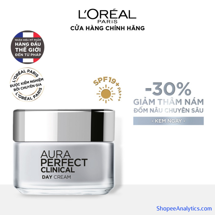 L'Oreal Paris Aura Perfect Clinical Day SPF 19PA +++ 50ml là sản phẩm kem dưỡng da ban ngày giúp bạn có một làn da trắng mịn, giảm hẳn thâm nám. Bên cạnh đó, sản phẩm còn có dưỡng chất nuôi dưỡng tế bào da, và màng chắn bảo vệ da khỏi tia UV. Chỉ sau một thời gian ngắn sử dụng, bạn sẽ thấy làn da được cải thiện rõ rệt.