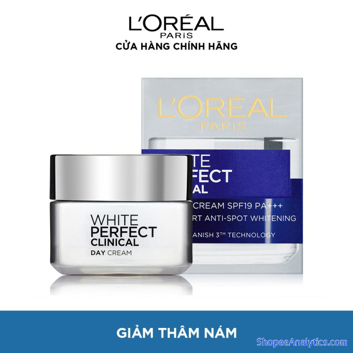 ● L'Oreal Paris White Perfect Clinical Day SPF 19PA +++ 50ml là sản phẩm kem dưỡng da ban ngày giúp bạn có một làn da trắng mịn, giảm hẳn thâm nám.