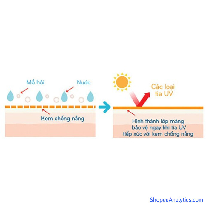 - Chống tia UVB và UVA với chỉ số SPF 50+ (chống UVB 500 phút) và PA+++ (chống UVA 12 giờ).