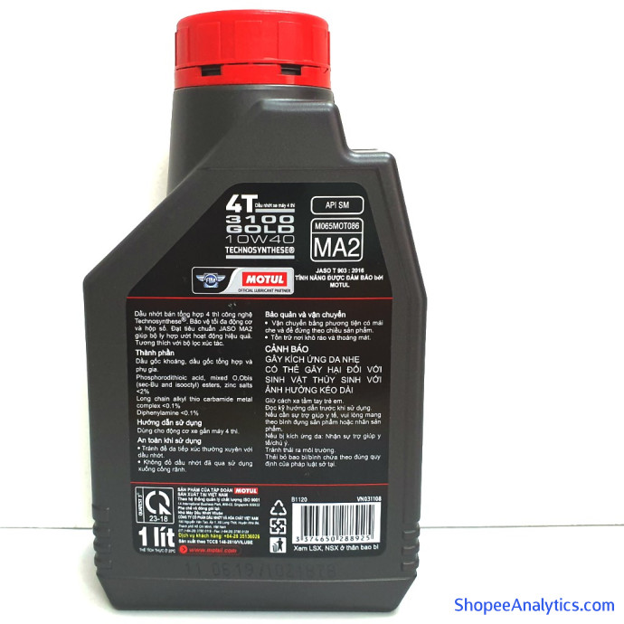 (Shopee tài trợ) Motul 3100 Gold 10W40 800ml nhớt cao cấp chuyên dùng cho các loại xe số, xe tay côn như: Exciter 150, Exciter 135, Yamaha FZ150i, Yamaha R15, Su En-150, Axelo, Raider 150, Sonic 150 v.v… rất phù hợp với các dòng xe số như: Sirius RC Fi 2014, Sirius R, Jupiter RC Fi 2014, Wave RSX v.v….