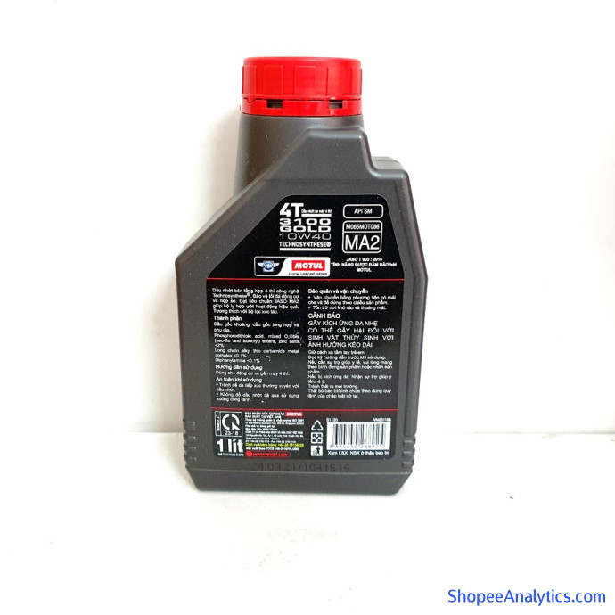 Nhớt Motul 3100 Gold 10W40 800ml được nhập chính hãng từ Tập đoàn nhớt MOTUL tại Pháp. Đây cũng là loại nhớt cao cấp nhất dành cho xe số đang rất nhiều biker tin dùng trong thời gian gần đây, và nhận được nhiều phản hồi tích cực từ các khách hàng sau 1 thời gian sử dụng, xe hoạt động êm ái và bốc hơn rõ rệt, thời gian sử dụng lâu hơn, khoảng 3000km mới cần thay nhớt mới…