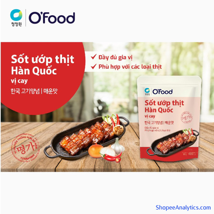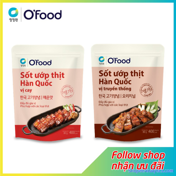 Tổng thể Sốt ướp thịt Hàn Quốc OFood gói 80g, giúp thị mềm, ngọt, thơm dậy vị dùng cho 400g thịt được đánh giá trung bình 4.97/5 điểm dựa vào 181 đánh giá qua 873 lượt mua hàng (Cập nhập ngày 09/10/2021).