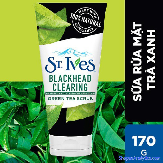 Sữa rửa mặt tẩy tế bào chết ngừa mụn St.Ives Trà Xanh: Nhẹ nhàng làm sạch mụn đầu đen và làm dịu da ửng đỏ, tổn thương do mụn. Thanh lọc da, làm giảm kích ứng và mẩn đỏ do mụn gây ra, giúp da khỏe mạnh, mịn màng.