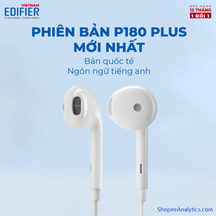 Tổng thể [VOUCHER 20%] Tai nghe nhét tai có dây EDIFIER P180 PLUS Chân cắm 3.5 Chất liệu TPE dài 1.3m Bảo hành 12 tháng 1 đổi 1 được đánh giá trung bình 4.90/5 điểm dựa vào 237 đánh giá qua 496 lượt mua hàng (Cập nhập ngày 15/10/2021).
