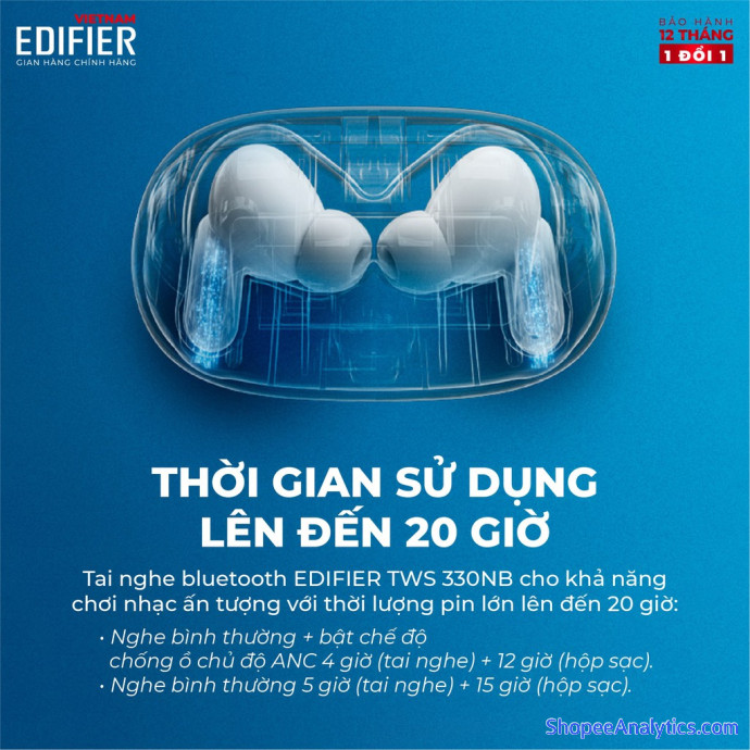 Tổng thể Tai nghe Bluetooth 5.0 EDIFIER TWS 330NB - Bản quốc tế mới nhất - Thời gian hoạt động 20 giờ - Chính hãng được đánh giá trung bình 5.00/5 điểm dựa vào 1 đánh giá qua 2 lượt mua hàng (Cập nhập ngày 23/08/2021).