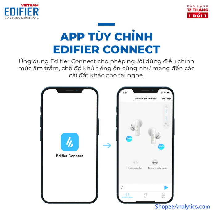- Ứng dụng Edifier Connect cho phép người dùng điều chỉnh mức âm trầm, chế độ khử tiếng ồn cũng như mang đến các cài đặt khác cho tai nghe.