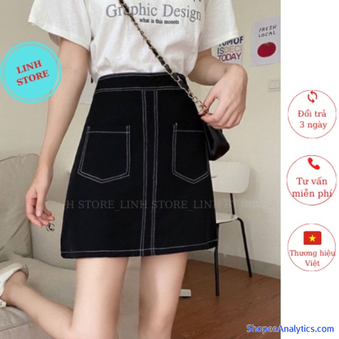 Chân váy chữ A ngắn đen viền chỉ nổi lưng cao túi trước 2 bên có quần chống lộ