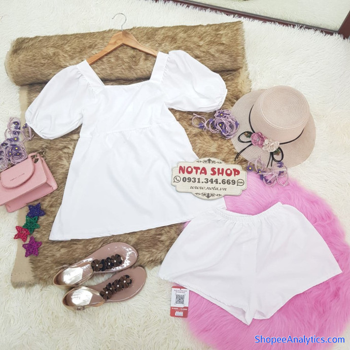 Set bộ đùi phối áo babydoll cổ vuông tươi trẻ