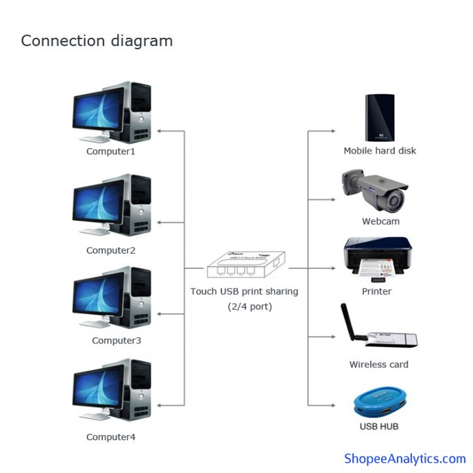 BỘ CHIA USB IN 1-4 DTECH DT-8341 cho phép nhiều máy tính chia sẻ một giao diện thiết bị USB duy nhất, một loạt các thiết bị bên ngoài có thể được truy cập thông qua cổng USB của sản phẩm để đạt được nhiều máy tính để chia sẻ một thiết bị mục đích duy nhất, không chỉ làm giảm chi phí mua thiết bị, mà còn tiết kiệm nguồn tài nguyên không gian hơn.