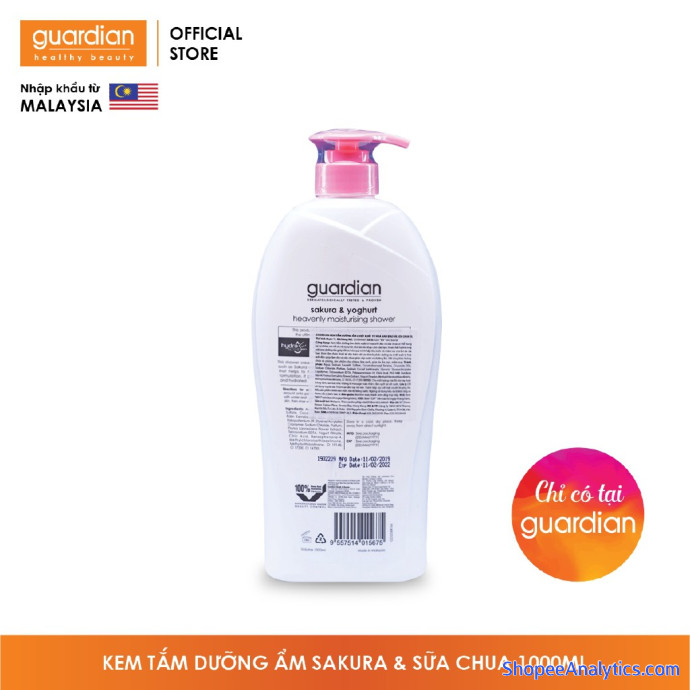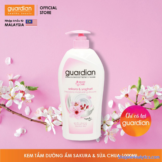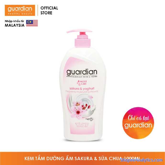 Sữa tắm Guardian được chiết xuất từ các thành phần tự nhiên, sự kết hợp giữa Hoa Anh Đào và Sữa chua giúp cấp nước và hiệu quả dưỡng ẩm cao, chăm sóc tối đa cho làn da nhạy cảm.