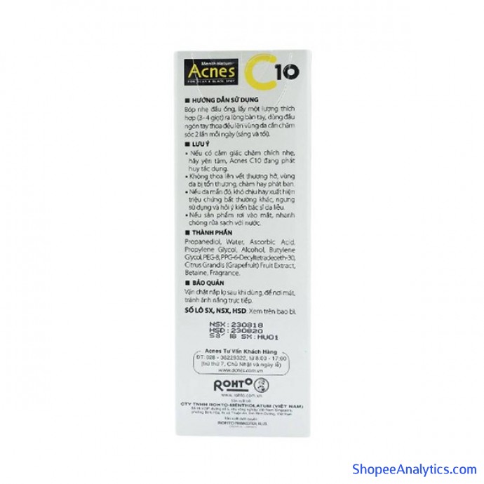 - Sau nhiều năm nỗ lực nghiên cứu, Công ty Rohto-Mentholatum đã thành công trong việc tạo ra sản phẩm Acnes C10 với hàm lượng Vitamin C nguyên chất 10%, ổn định và thấm tốt qua da, không dầu, không chất bảo quản.