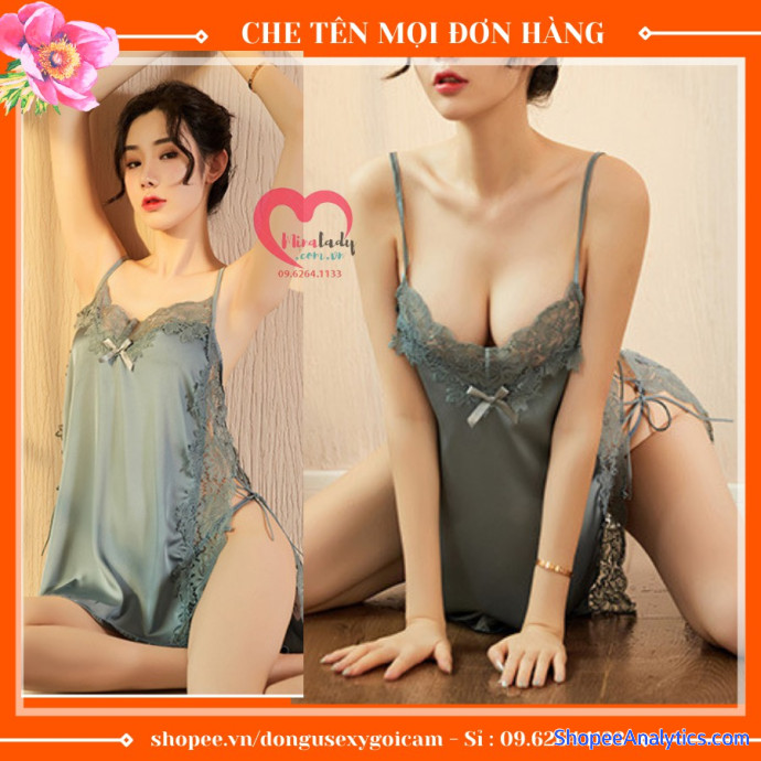 Đầm Ngủ Lụa Phối Ren Sexy - Tặng Kèm Quần Chip Xinh - Quyến Rũ Đẹp Mắt -Đan Dây