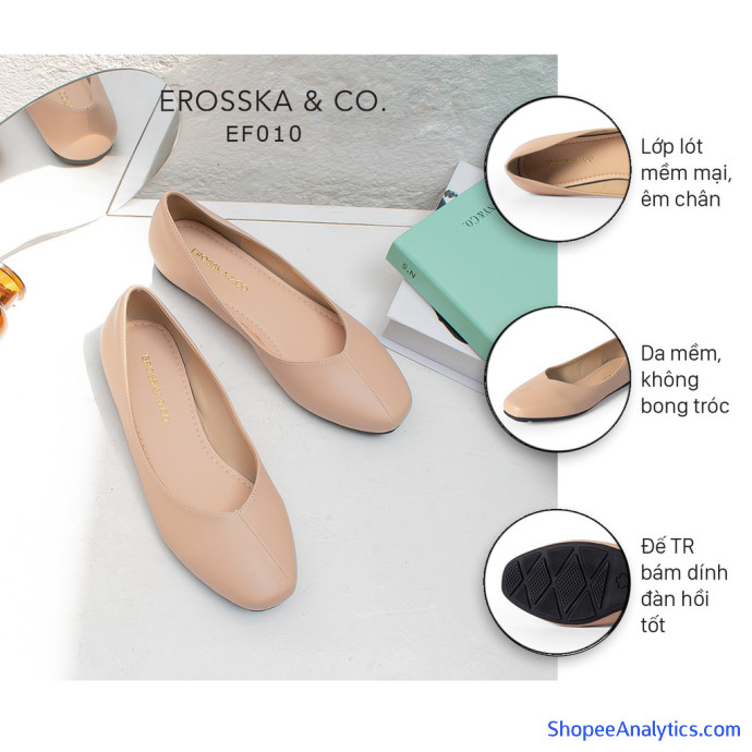 4. ĐẾ GIÀY CAO SU NƯỚC CAO CẤP ĐÀN HỒI CAO, HẠN CHẾ TIẾNG ỒN: Đế giày búp bê Erosska được làm bằng chất liệu TPR cao cấp theo tiêu chuẩn xuất khẩu, đảm bảo độ đàn hồi, mềm êm, hạn chế tiếng ồn phát ra khi di chuyển. Đặc biệt đế giày Erosska có độ BÁM DÍNH tốt, không trơn trượt..